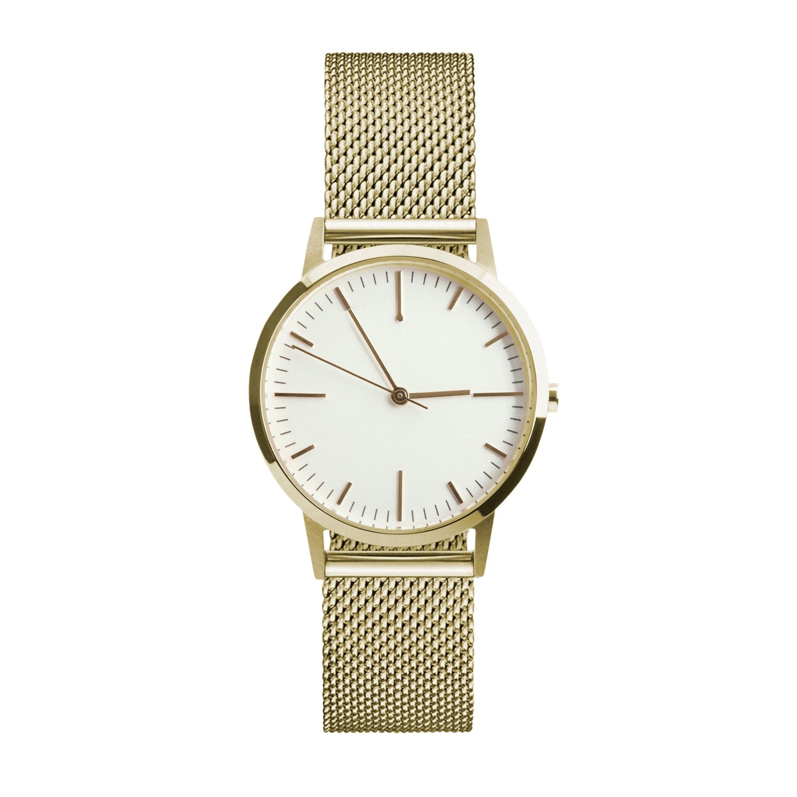 NEW 2019 DESIGN – The limited edition 30mm gold women’s watch with milanese mesh strap combines the classic detailing of vintage watches with a modern minimalist finish.